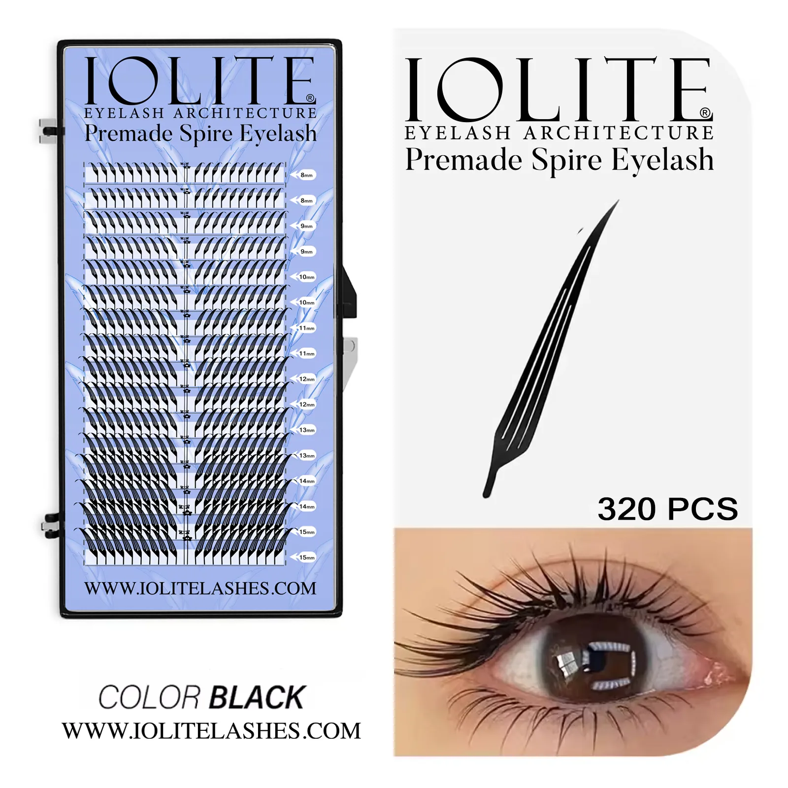 IOLITE Eco Premade Spire Eyelash Extensions – CC Curl 0.07 Thickness, (Length: 8mm to 15mm & Mix Tray)